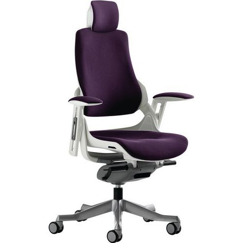 The frame is designed to offer orthopaedic support. Synchronised glide tilt mechanism. Anti-shock tilt function. The built-in lumbar support adjusts in depth to suit the user. Height adjustable backrest. Weight tilt tension control. Aluminium 5-star base. The optional arms both pivot and are height adjustable. Features an optional headrest.