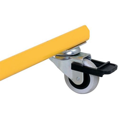 Powder coated. With self-locking nuts in the extendable area. With reflective warning marking on both sides. Very easy to use. Includes brake on castor.
