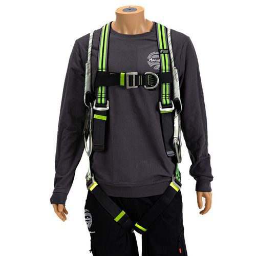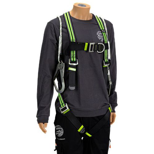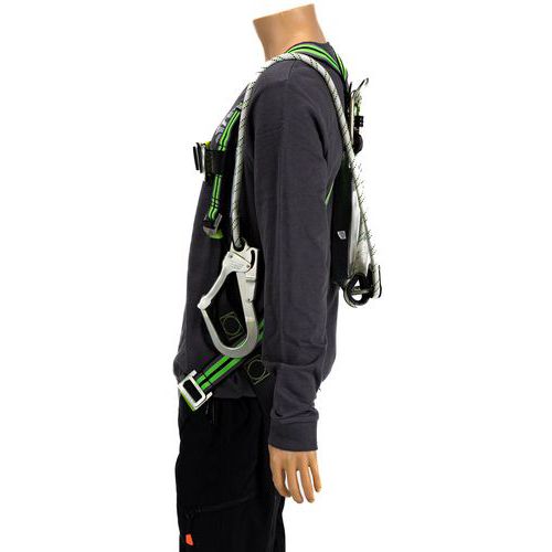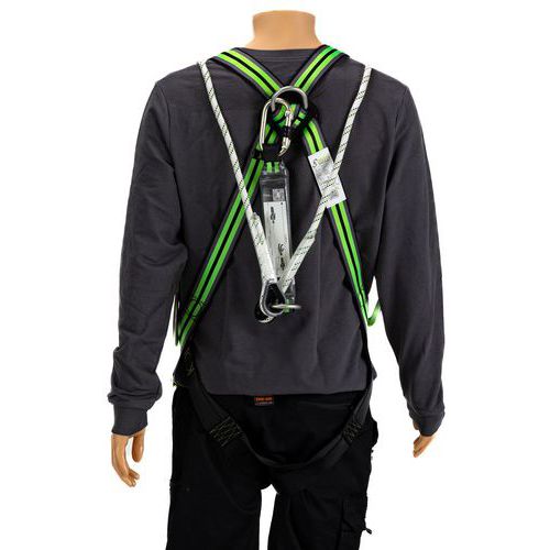 Kit includes: 1 harness, 1 double lanyard with energy absorber, 1 backpack.