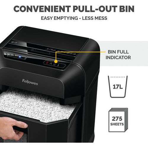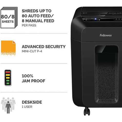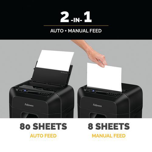 Fellowes 80M Mini Cut Auto Feed Paper Shredder, Sheet capacity 80 gr.: 8, Bin capacity: 17 L