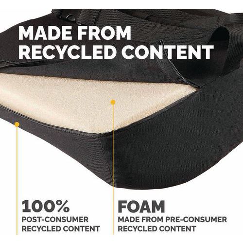 - The foam contains post-consumer recycled content from mattresses. The fabric cover is made from 100% post-consumer recycled polyester.