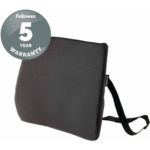 - This Fellowes comfort back cushion is made in the UK and comes with a 5-year warranty.