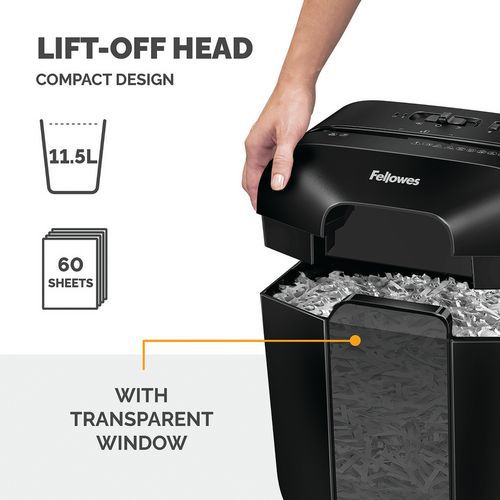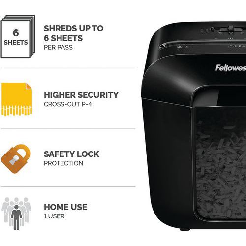 Fellowes LX25 Cross Cut Paper Shredder, Sheet capacity 80 gr.: 6, Bin capacity: 11.5 L