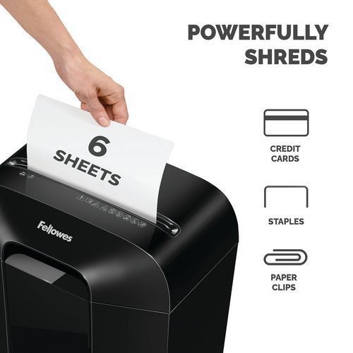 Shreds up to six sheets of paper per turn - suitable for shredding all your confidential documents.