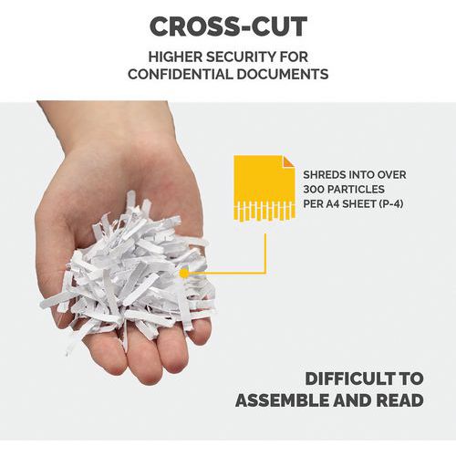 The powerful cross-cut cutters can also shred staples, paper clips, and credit cards.