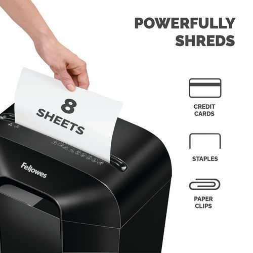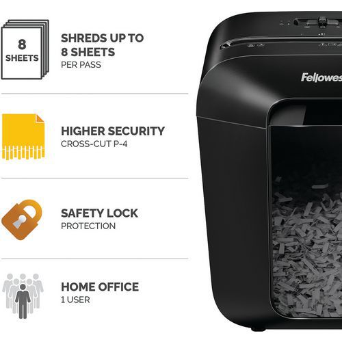 Fellowes LX45 Cross Cut Paper Shredder, Sheet capacity 80 gr.: 8, Bin capacity: 17 L