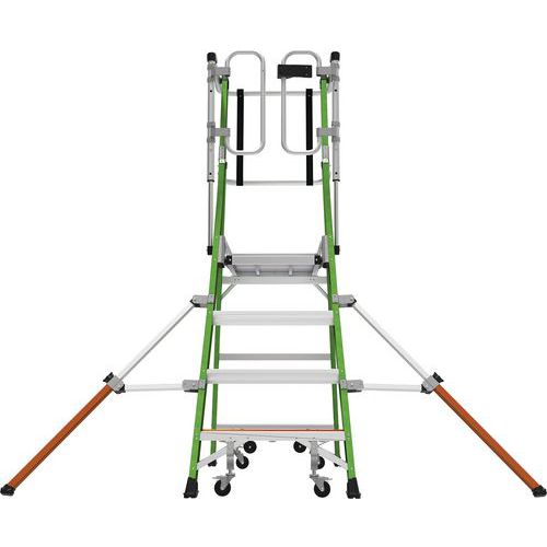 Wheel lift castors allow you to roll the ladder while fully deployed and lock it in place for safe climbing.