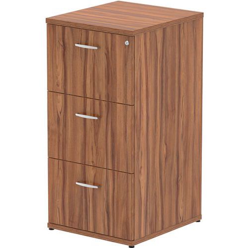 Lockable drawers. Heat-resistant melamine finish. Fitted with an anti-tilt function. 25mm thick top. Full 18mm back board. 2mm ABS protective edges. Steel handles. Solid box drawer construction. Fits foolscap filing. Secure steel to steel fittings.