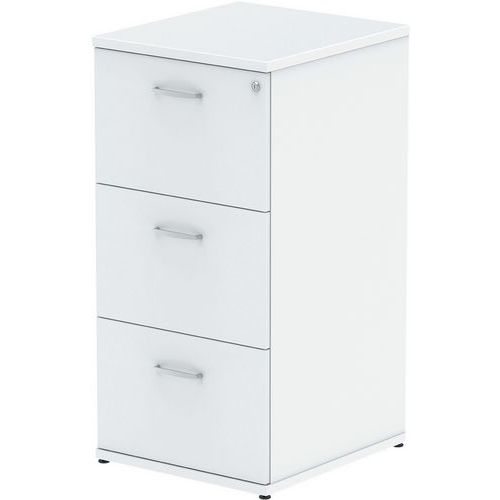 Lockable drawers. Heat-resistant melamine finish. Fitted with an anti-tilt function. 25mm thick top. Full 18mm back board. 2mm ABS protective edges. Steel handles. Solid box drawer construction. Fits foolscap filing. Secure steel to steel fittings.