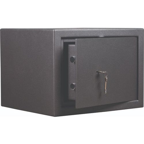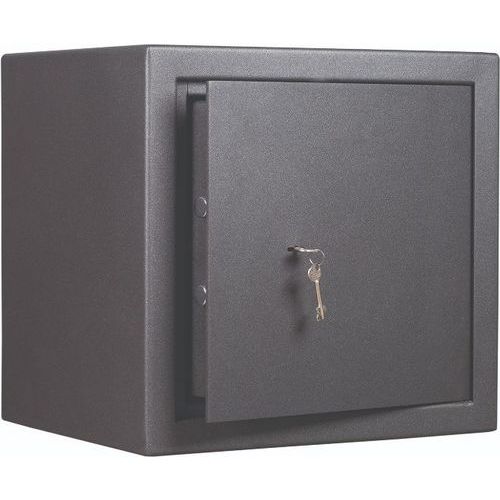 A secure safe, featuring key locking and providing a first line of protection from fire