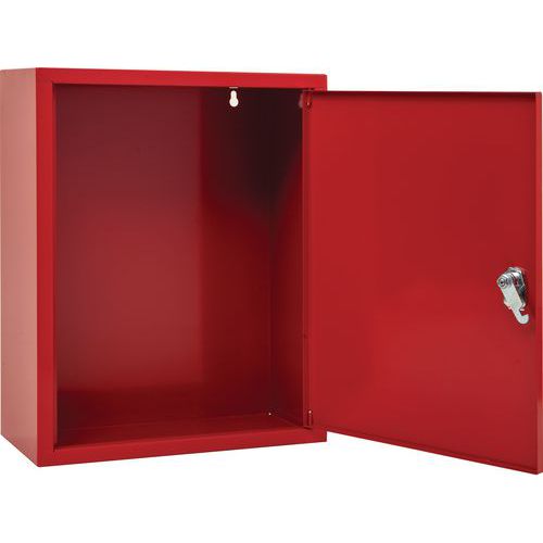 - Powder coated red finish, tamper evident door and self-adhesive label.