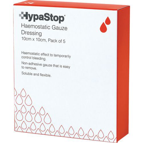 Unlike standard dressings, the HypaStop Haemostatic gauze stops major bleeds quickly by encouraging the clotting process to start within minutes of application.