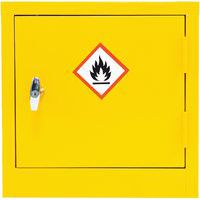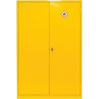 - This hazardous substance cabinet is epoxy powder coated in a yellow finish for high visibility.