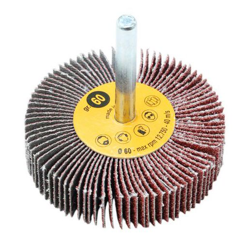 - Flap wheel on shaft, for multi-material cleaning and finishing applications.