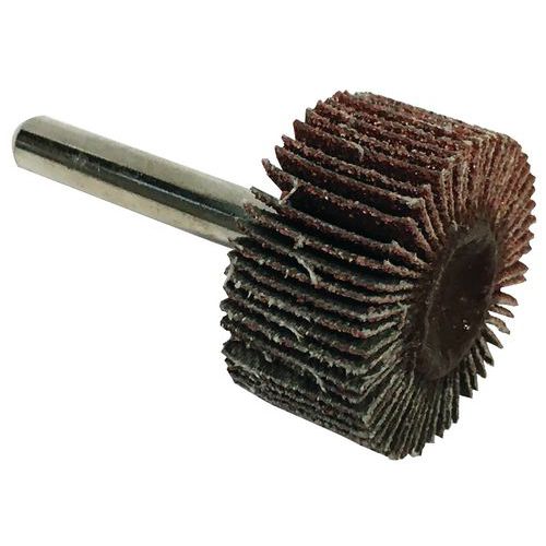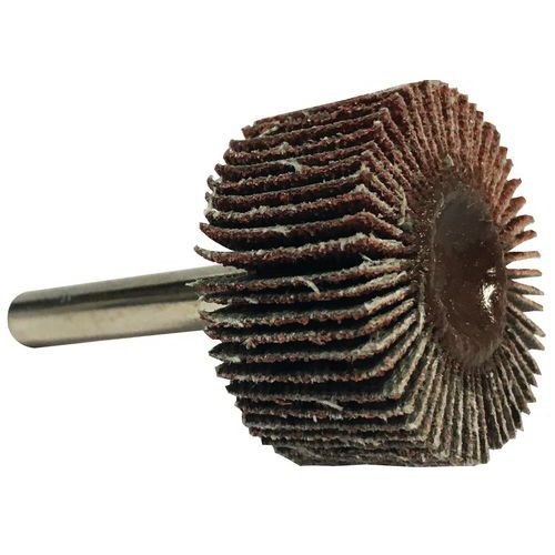 - Flap wheel on BDX shaft designed to provide a continuous finish and regular cut rate.
