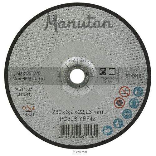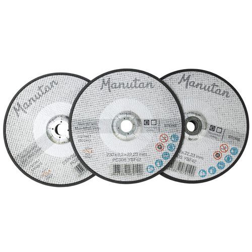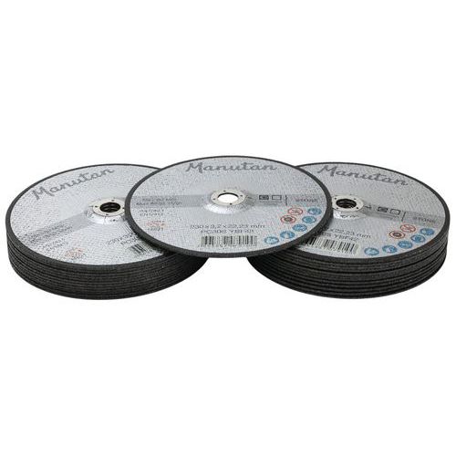 Flat cutting disc for all materials – Manutan Expert Reinforced cutting disc for cutting or deburring metals and materials, for use with hand-held tools or fixed machines. Produced with abrasive grain and binder material for fast, high-performance cuts.