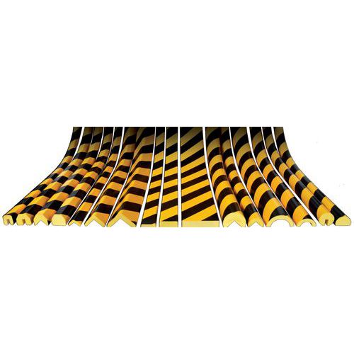 Prevent shock-related injuries while protecting equipment. Indicate hazardous areas indoors and outdoors thanks to their yellow and black safety markings. Highly flexible polyurethane foam completely free of HCFC. Temperature resistance (-40 to +100°C). Attach with high-performance adhesive to numerous clean and grease-free surfaces.