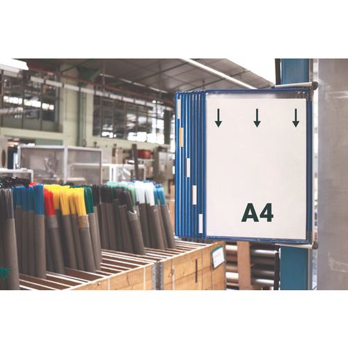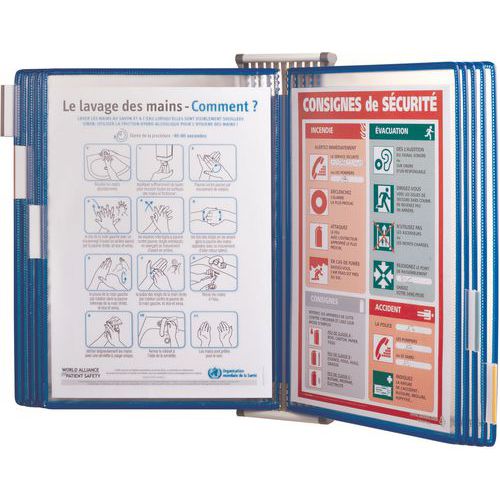 Flip file wall unit with 10 x A4 sized pockets, Holder material: Steel, Colour: Blue, Number of pockets: 10 Flip file wall unit with 10 x A4 sized pockets, Holder material: Steel, Colour: Blue, Number of pockets: 10