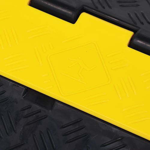 Two channels = 60 mm and three channels = 80 mm. Protective ramp specially designed to conceal and protect wires, cables, pipes, tubes or ducts. Cables feed through from the top. Removable hinged cover provides protection. Quick to assemble and disassemble, saves on effort as no need for tools. Non-slip surface.