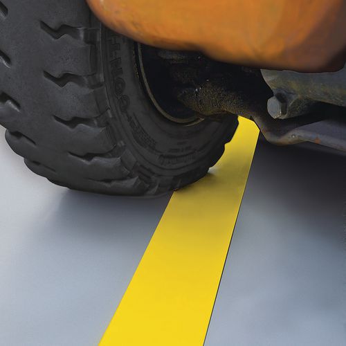 Durable and resistant, the tape was developed specifically for use in forklift trucks areas operate. Produced in 700µ thick coloured flat steel this tape is particularly suitable for precision marking on smooth level internal floors. For indoor use and permanent floor marking.
