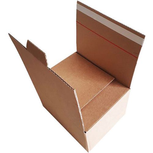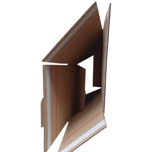 Quick to assemble with strong base flap. Speedy adhesive tape closure. Pre-cut for easy opening. Use the adhesive tape to seal the same box for a return shipment.