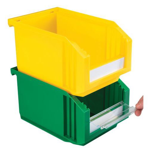 Easy to fit. The shield is easy to operate even on stacked bins. Made in the EU