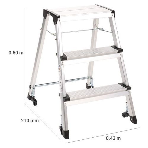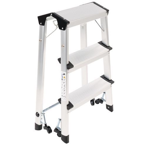 - Single-access, folding aluminium stepstool.