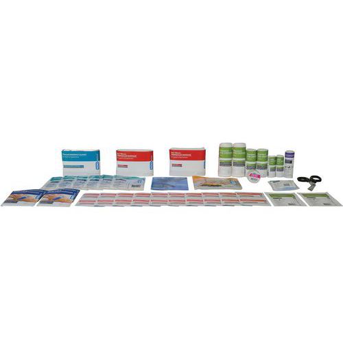 - Using kit refills ensures that your first aid provision is up-to-date and complete without needing to check individual components.