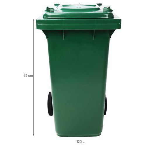 Practical and easy-to-handle wheelie bin with sturdy handles and wheels. Available in several colours to make waste sorting and content identification easier. Solid wheels with a 200 mm diameter. Made from premium high-density polyethylene (HDPE). UV- and impact-resistant. Container resistant to chemical agents and protected from harmful insects. Does not absorb liquids, washable and sterilizable.