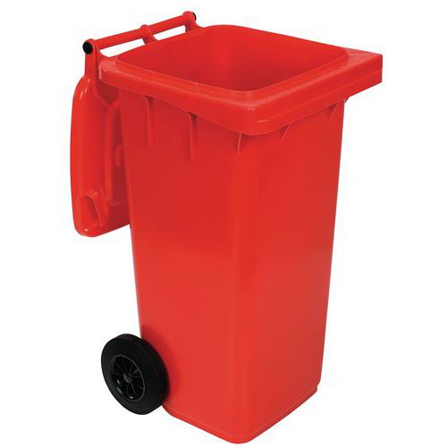 Practical and easy-to-handle wheelie bin with sturdy handles and wheels. Available in several colours to make waste sorting and content identification easier. Solid wheels with a 200 mm diameter. Made from premium high-density polyethylene (HDPE). UV- and impact-resistant. Container resistant to chemical agents and protected from harmful insects. Does not absorb liquids, washable and sterilizable.