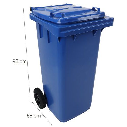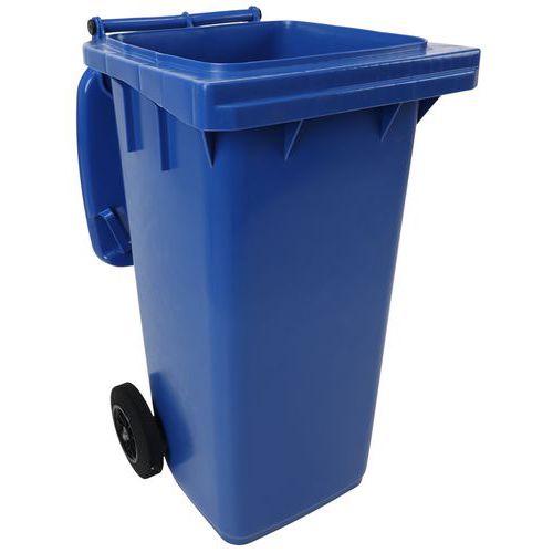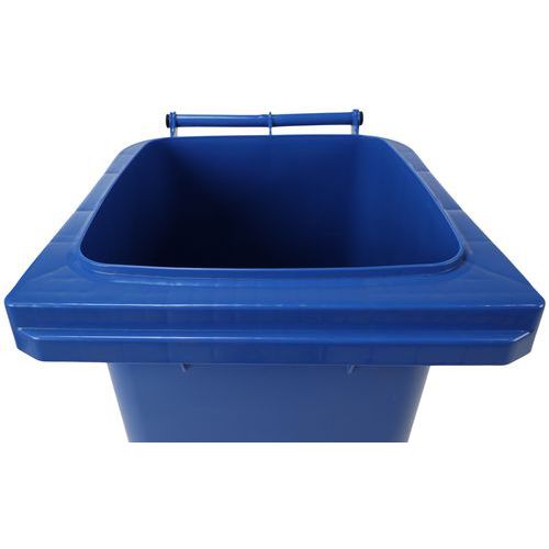 Practical and easy-to-handle wheelie bin with sturdy handles and wheels. Available in several colours to make waste sorting and content identification easier. Solid wheels with a 200 mm diameter. Made from premium high-density polyethylene (HDPE). UV- and impact-resistant. Container resistant to chemical agents and protected from harmful insects. Does not absorb liquids, washable and sterilizable.