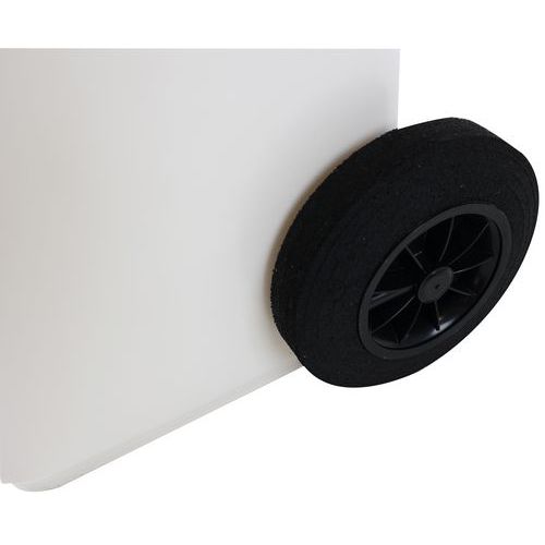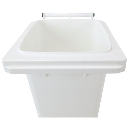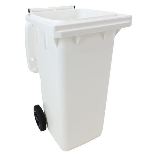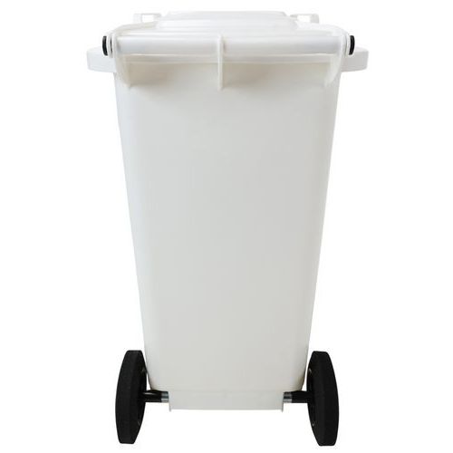 Practical and easy-to-handle wheelie bin with sturdy handles and wheels. Available in several colours to make waste sorting and content identification easier. Solid wheels with a 200 mm diameter. Made from premium high-density polyethylene (HDPE). UV- and impact-resistant. Container resistant to chemical agents and protected from harmful insects. Does not absorb liquids, washable and sterilizable.