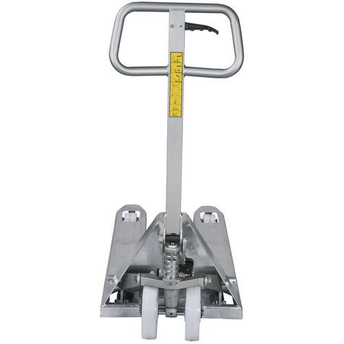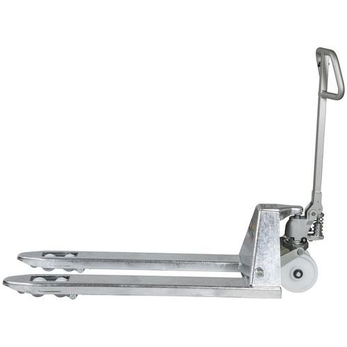 | Product Name | Galvanised manual pallet truck, Load capacity: 2500 kg, Fork length: 1150 mm, Steering wheel material: Nylon |