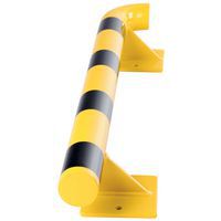 Wall protection stop made of robust steel for effective shock absorption. Good visibility thanks to its yellow/black colour. Galvanized steel offering increased resistance to abrasion and corrosion. Easy installation thanks to its mounting plate to be anchored. Plate 195 x 120 mm.