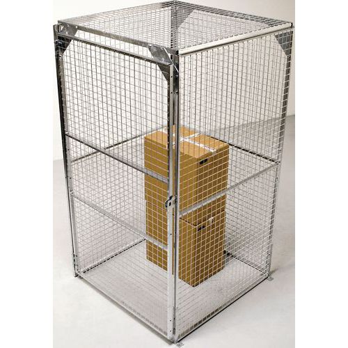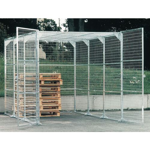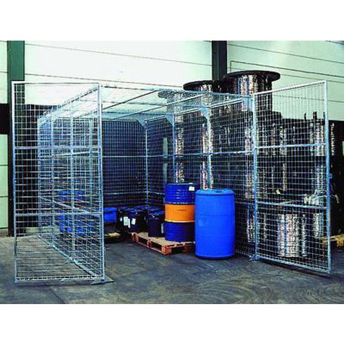 Indoor or outdoor free-standing cages for hazardous materials storage.