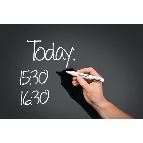 The writing surface is suitable for chalk pens and whiteboard markers.