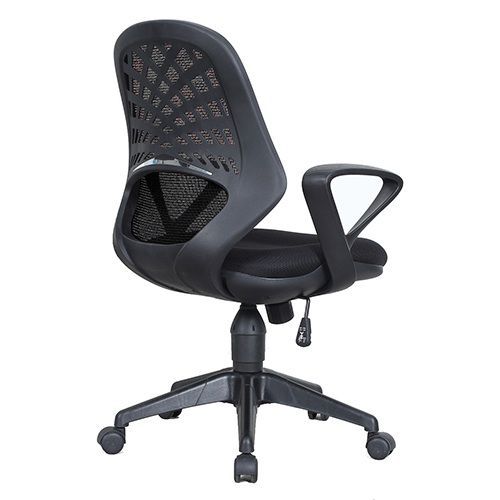 Mid back mesh lattice effect office chairs with fixed armrests.