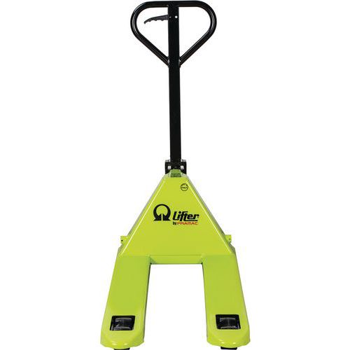 - A one-piece cast-iron housing protects the insides of the pallet truck.