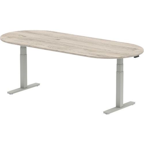 Impulse height adjustable boardroom table. 25mm thick top. The legs are powder-coated in an attractive silver colour. 2mm ABS protective edging. The tough melamine finish resists heat damage. Steel to steel fittings.