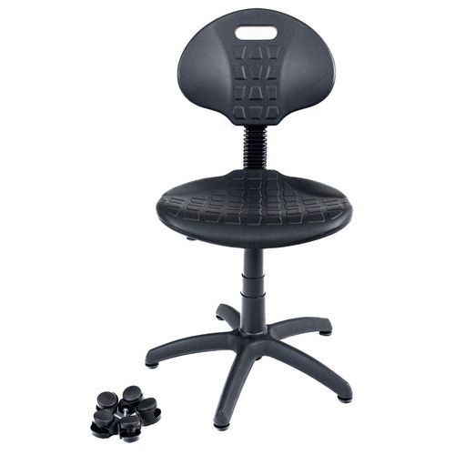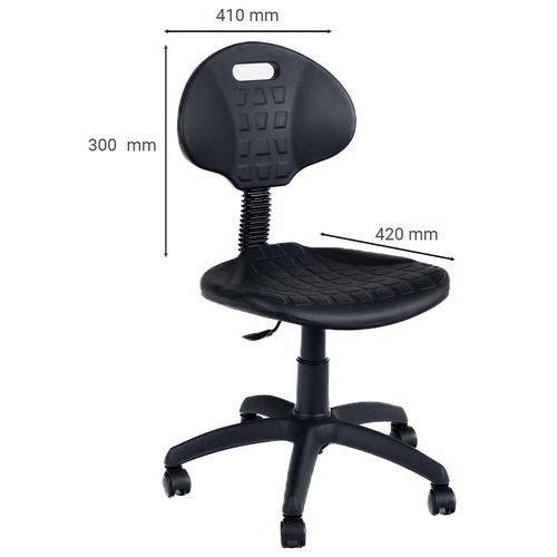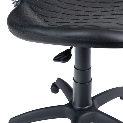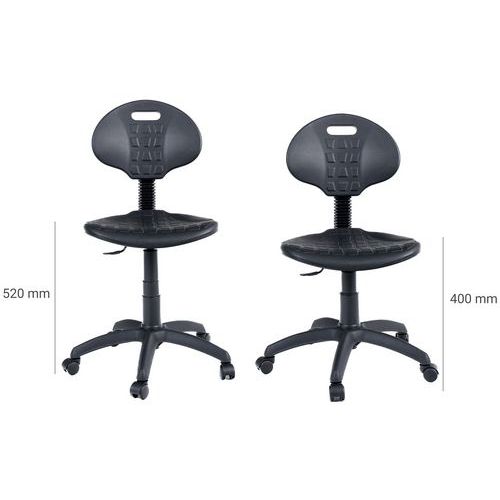 | Product Name | High Black Workshop Chair, With armrest: no, Type of leg: Rollers, Seating material: Polyurethane |
