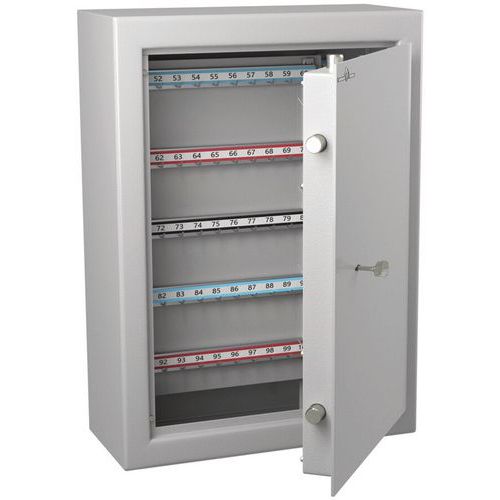 - Key cabinet made from 2 mm-thick melamine steel sheeting, with a door thickness of 55 mm