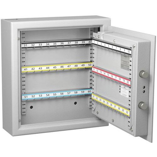 - Key cabinet made from 2 mm-thick melamine steel sheeting, with a door thickness of 55 mm