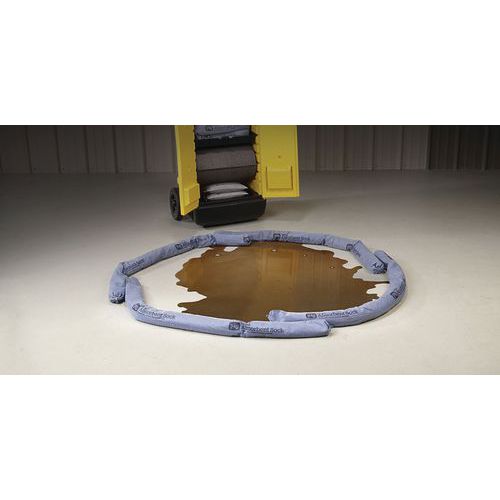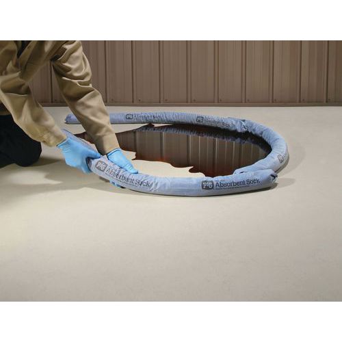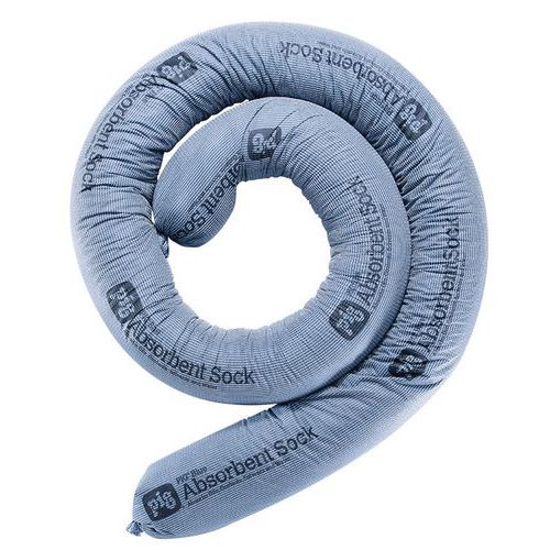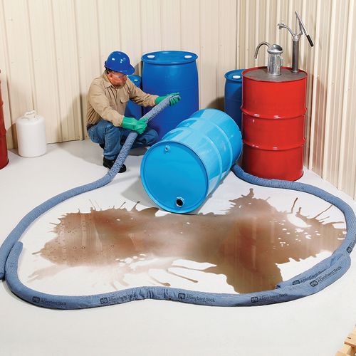 Mineral component ensures quick, high capacity absorption. Acts as an effective barrier to hold spills. Hugs the shape of the ground. Holds to the ground even when saturated. Easily identifiable blue sock.