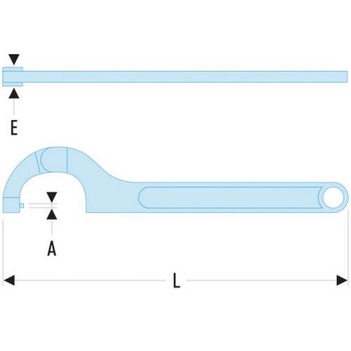 - Same design and benefits as the 125A wrench, but fitted with removable hooks to turn holed nuts.