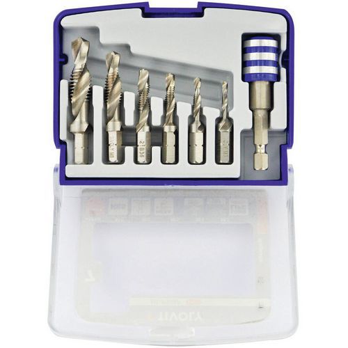 | Product Name | HSS shock series hexagonal tapping drill bits, Number of parts: 7, Material: Steel, Type of support: Plastic |
