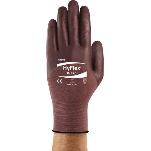 - The HyFlex® 11-926 industrial gloves' ergonomic hand shape and lightweight liner help reduce hand fatigue by making them flexible and manoeuvrable.