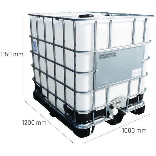 | Product Name | Standard single cubic 1000-l transport container + pallet, Capacity: 1000 L, O/A height: 1150 mm |