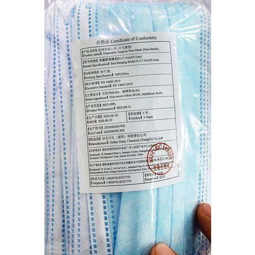 | Product Name | IIR surgical mask, Colour: Blue, Type: IIR, Model: Disposable, Sterile: no |