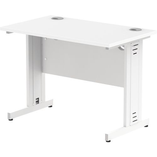 Impulse rectangular desks with cable management legs, to keep cables under control.