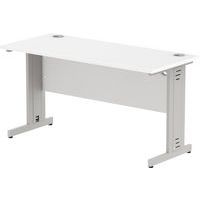 Melamine finish with a 2mm ABS durable, protective edge. 18mm modesty panel. Two cable ports to help keep a 'clean desk' environment. Features floor levellers, to level the desk on uneven floors and prevent rocking. Rather than screw directly into the wood or plastic, these desks screw in from steel to steel, which is more robust prevents damage if it needs to be dismantled and moved.